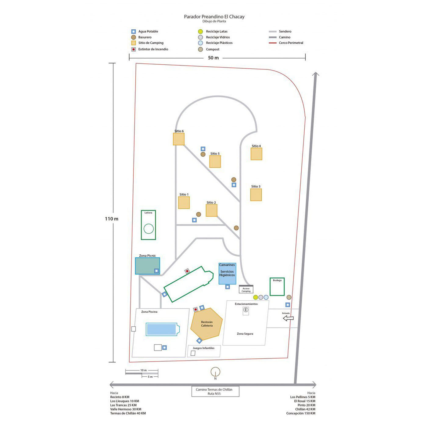Los sitios de camping son realmente cómodos, pues se encuentran rodeados y debajo de todos estos mágicos árboles, lo que los hacen muy reconfortante en cualquier época del año.En verano y primavera te protegen del calor,siendo una zona súper fresca en comparación con los alrededores, yen invierno te protegen del frío y la lluvia. Todos los sitios cuentan con una cómoda mesa y bancas, también una parrilla asadera,infaltable para hacer el mejor asado de todos, el asado de camping. También cada sitio cuenta con salida de corriente eléctrica y luz, lo que lo hace muy cómodo.