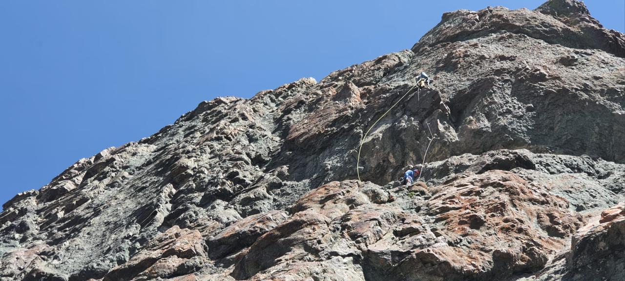 - Equipo básico de escalada para multilargos (arnés, zapatillas de escalada, sistema de aseguramiento reverso o similar, 2 reuniones y cordines de maniobras)