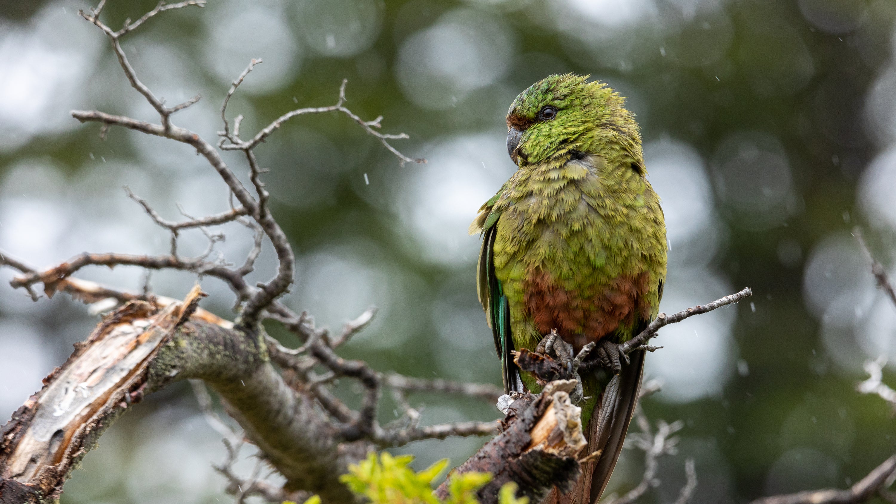 De vuelo vertiginoso, la Cachaña es una especie de loro endémica de Chile y Argentina, que habita en la Patagonia (de hecho es el loro más austral del mundo!) Este ave es conocida por su plumaje verde intenso y su pico anaranjado, lo que la hace una especie muy llamativa.