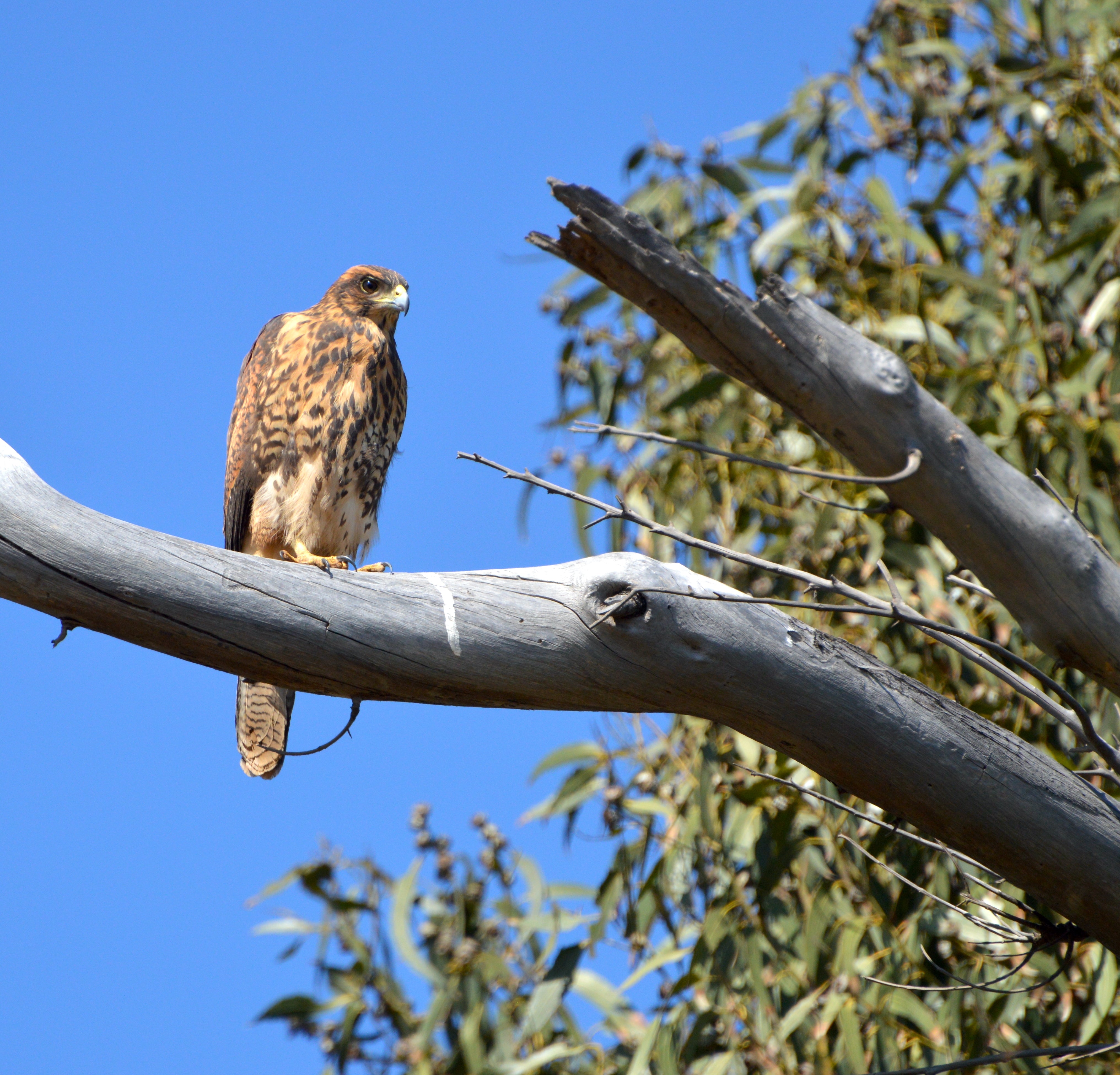 Los eucaliptos (Eucalyptus globulus)proporcionan un refugio perfecto para los Peucos (Parabuteo unicinctus) y actúan como una despensa para sus trofeos de caza. Si bien este árbol es introducido en Chile, en zonas donde no se explota permite complementarse en perfecta armonía con el ecosistema.