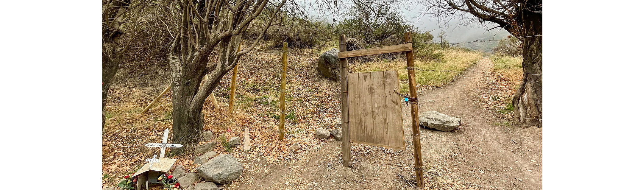 Foto: Animita y puerta lateral, donde comienza el sendero.
