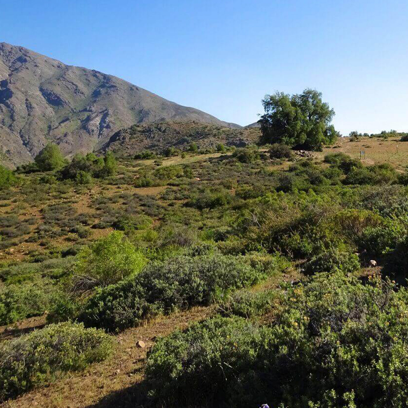 Es la misma ruta que se realiza para llagar al conocido trekking de Santiago, “Provincia”. Siguiendo nuestro trayecto 30 minutos después llegaremos al “Mirador de las Vacas” en donde podremos disfrutar de la vista hacia la ciudad de Santiago y podremos encontrarnos con ganados pastoreando en el sector. Luego 350 metro más arriba nos encontraremos con un cruce en dirección hacia el Alto del Naranjo y hacia Vallecito, este último es muy recomendable para ir en familia debido a su fácil acceso. Siguiendo por el sendero de color “verde” donde nos encontraremos una canaleta que lleva agua desde la quebrada donde será el último lugar para poder abastecerse de agua en el transcurso del trekking. El transcurso es por el filo del cerro en el cual tenemos que ir atentos, luego de dos kilómetroscoronaremos con un gran árbol de Quillay que entrega buena sombra en verano y protege en invierno.. más conocido como Alto el Naranjo, por el color anaranjado de la vegetación en cierta época del año, encontrándonos a 1.866 metros de altura.