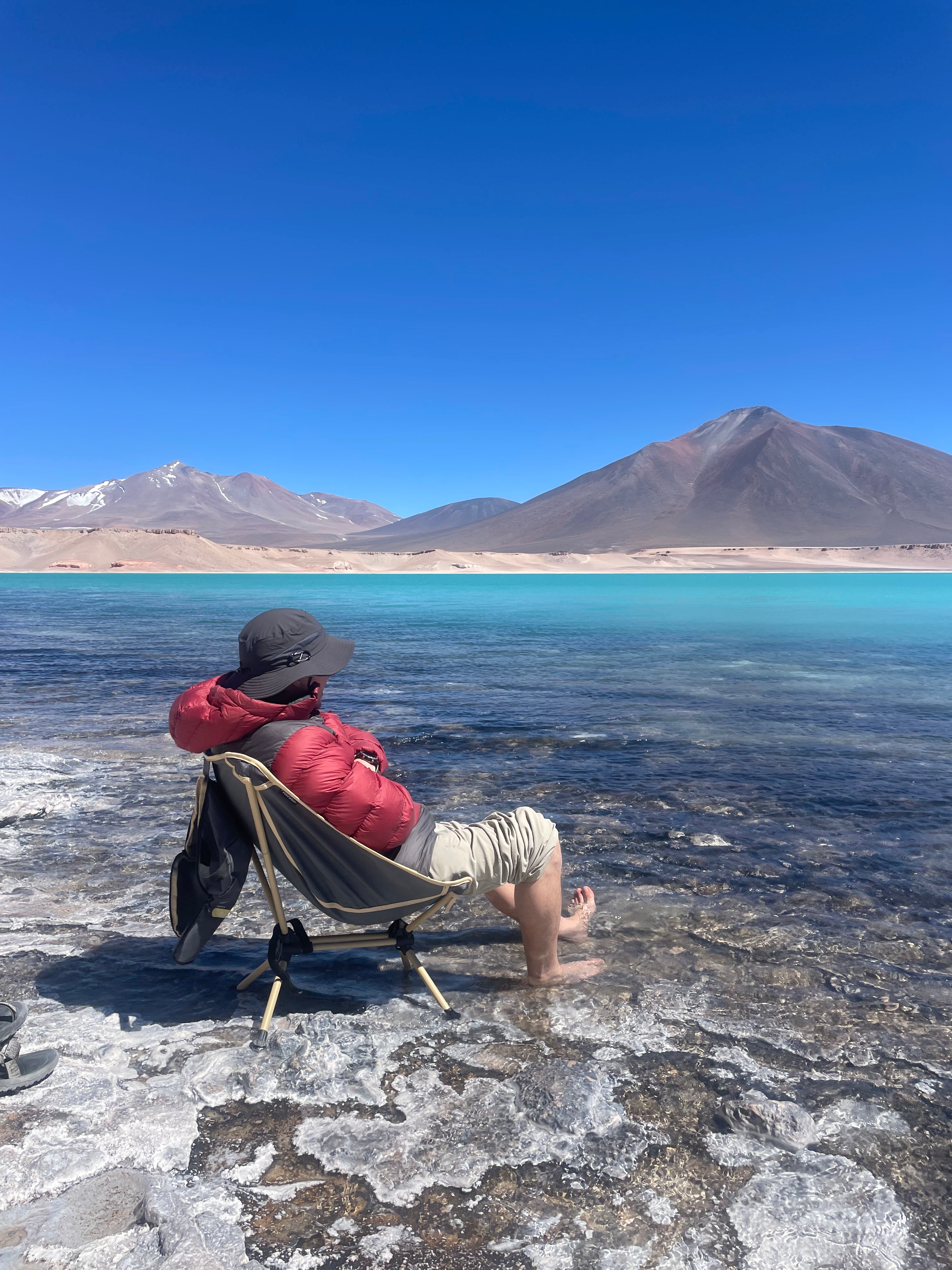 El 13 de diciembre comenzamos nuestro viaje desde Santiago, conformando un grupo de solo dos personas, con destino a Laguna Verde, en la región de Atacama, a 4,360 metros sobre el nivel del mar. El recorrido de 1,200 km nos regaló un paisaje espectacular, y al llegar a Laguna Verde, quedamos sin palabras ante la belleza del lugar: flamencos en la laguna, imponentes montañas rodeando el área y relajantes termas naturales.