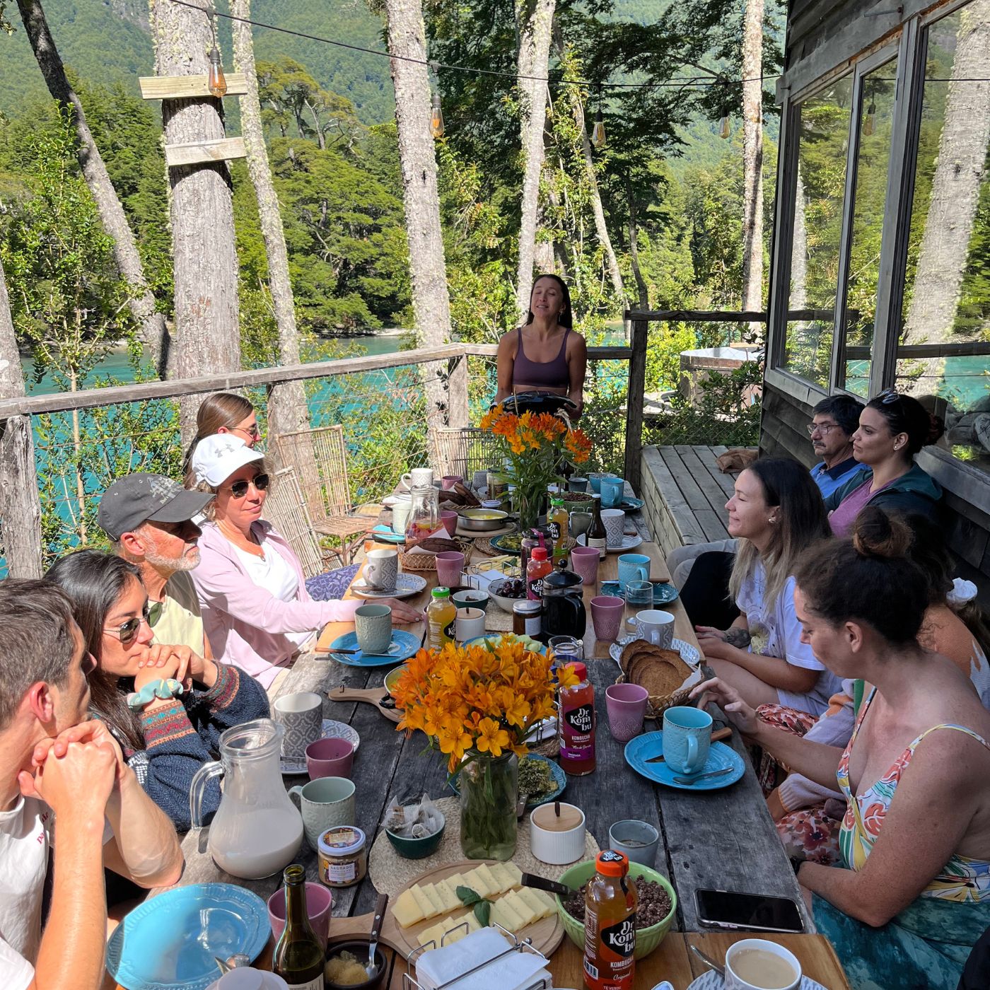 En este último retiro, en Puelo, el propósito e intención de este era la regeneración a través de las distintas prácticas ofrecidas, en este entorno natural majestuoso, verde, abundante y pristino. La naturaleza nos brinda su poder regenerativo tanto a partir de su contemplación como de su ingesta. Lo vivimos día a día, sanando y alimentándonos de las maravillas que ella crece para nosotros generosamente, y creo que todos hemos experimentado el regalo para el alma que significa estar en la naturaleza. Además, podemos sentir en nuestro cuerpo la mayor disponibilidad energética que disfrutamos cuando estamos tranquilos, perdidos en los distintos paraísos que la tierra tiene para nosotros.