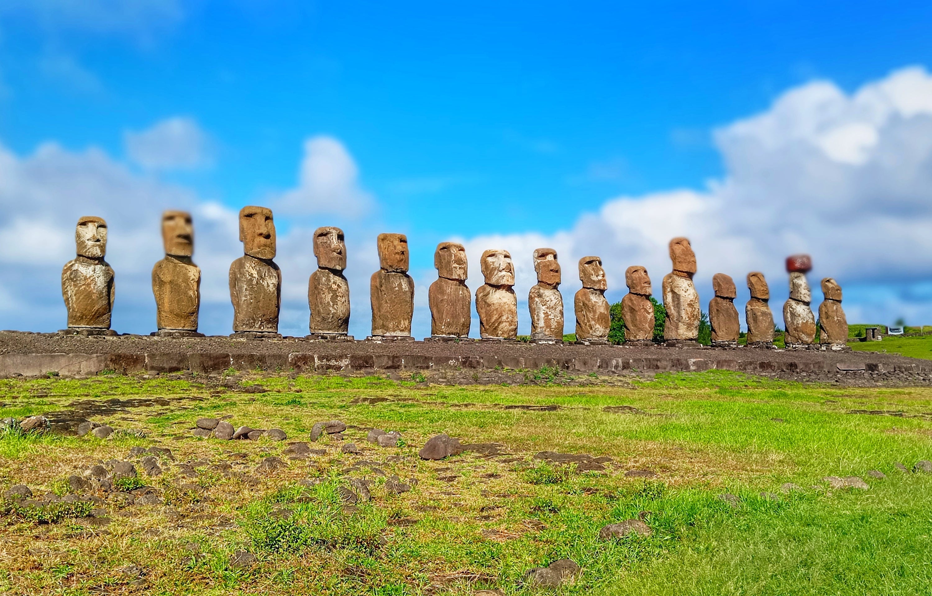 Pequeña en tamaño, pero gigante en historia y cultura. Acá están los famosos Moais, enormes figuras humanas de piedra. Los más grandes encontrados pueden llegar a 20 metros de altura y pueden ser vistos por toda la isla: en total son más de 900, muchos aun parcialmente enterrados en el suelo.