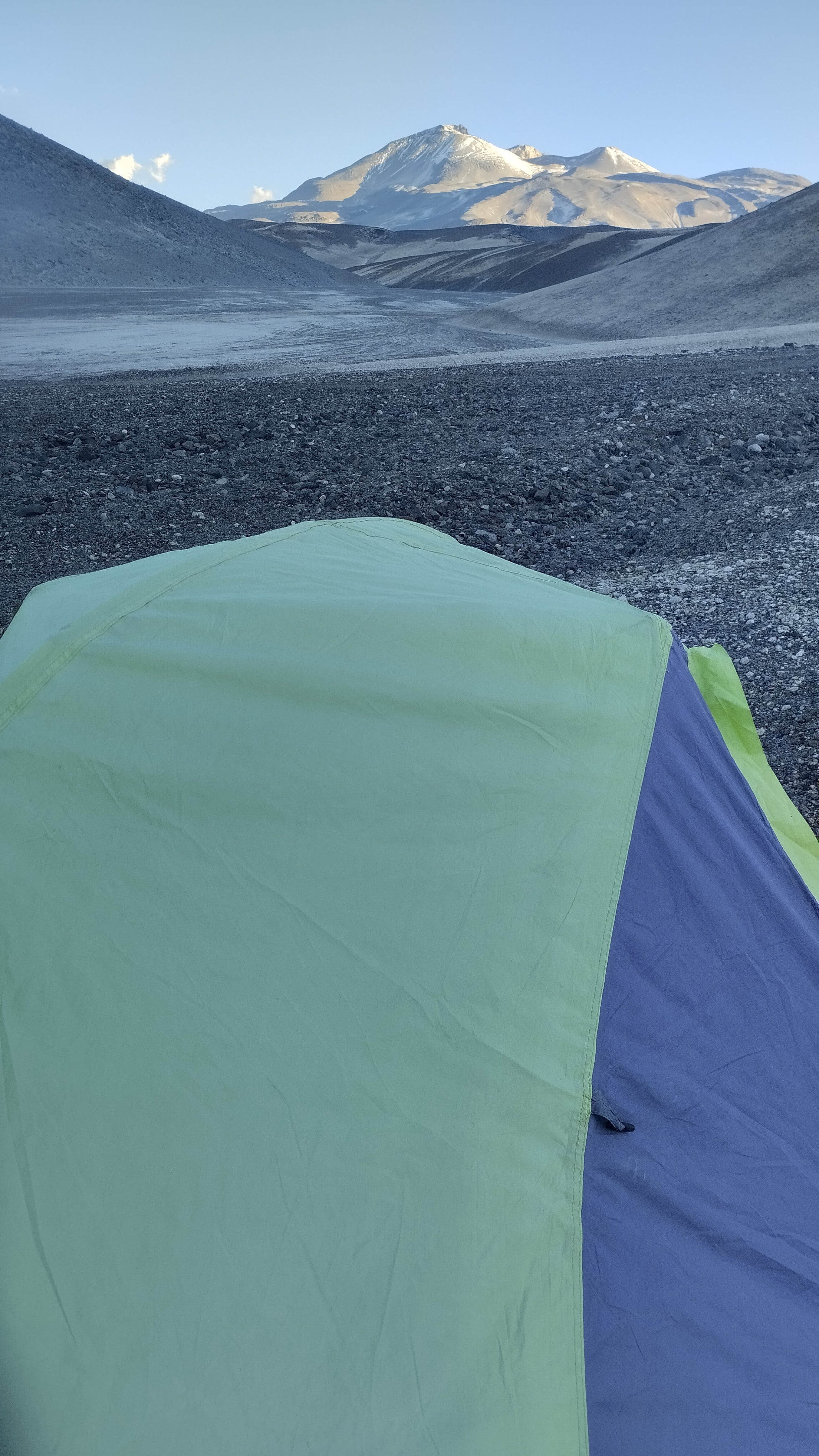 Nunca había porteado tan alto y me costó muchísimo, pero pude llegar a Tejos. Quería hacer cumbre al otro día, pero el descanso no me acompañó esta noche. Tuve algunas crisis de cefalea que me despertaron en la noche (tengo cefalea en racimos y justamente en los días de la expedición se le dió por venir más veces y con más power 😵💫). Lidiar con estas cefaleas en la altura tb fue uno de los desafios de este ascenso.