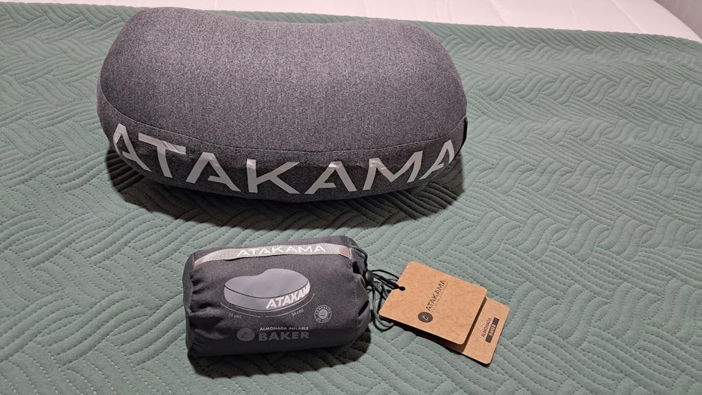 Almohada ultra compacta de alto rendimiento con relleno sintético y tela de polar para máxima comodidad en trekking y playa.
