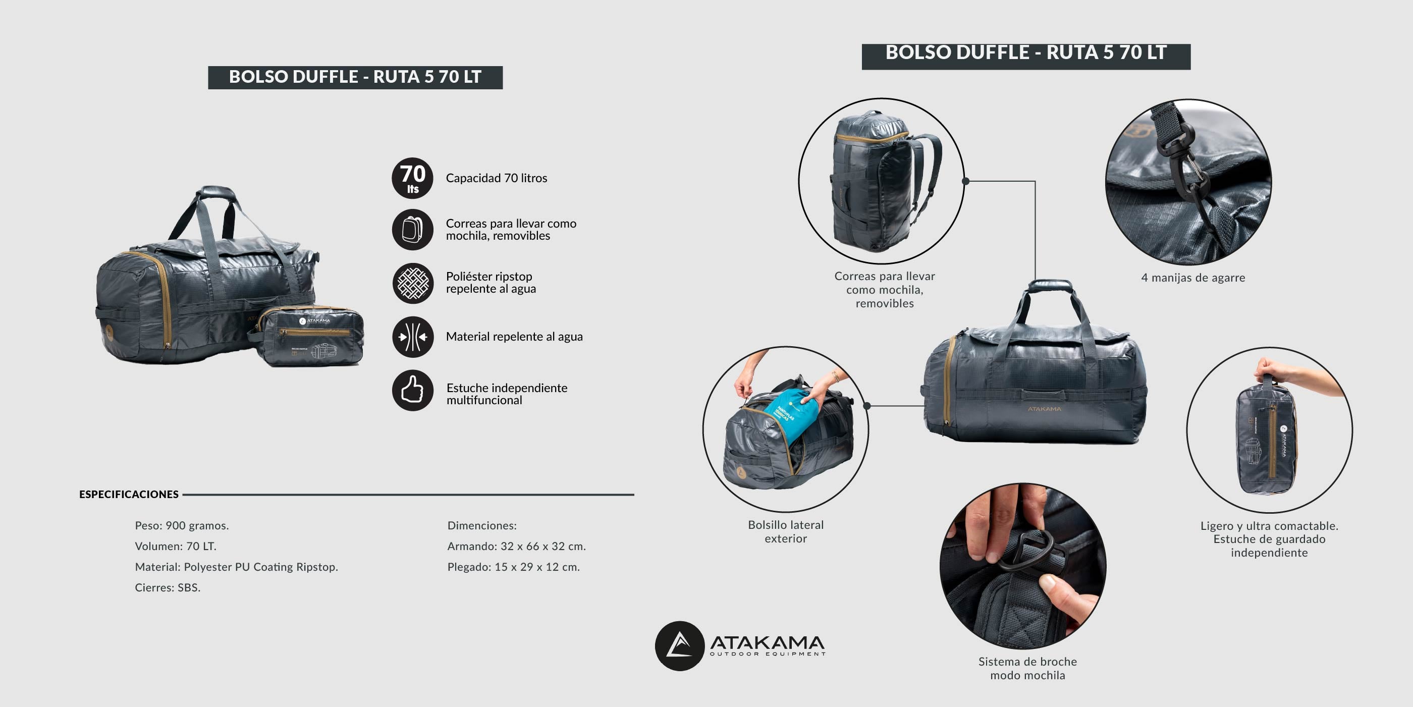 Bolso Duffle Ultra Compactable Ruta 5 70 lt
