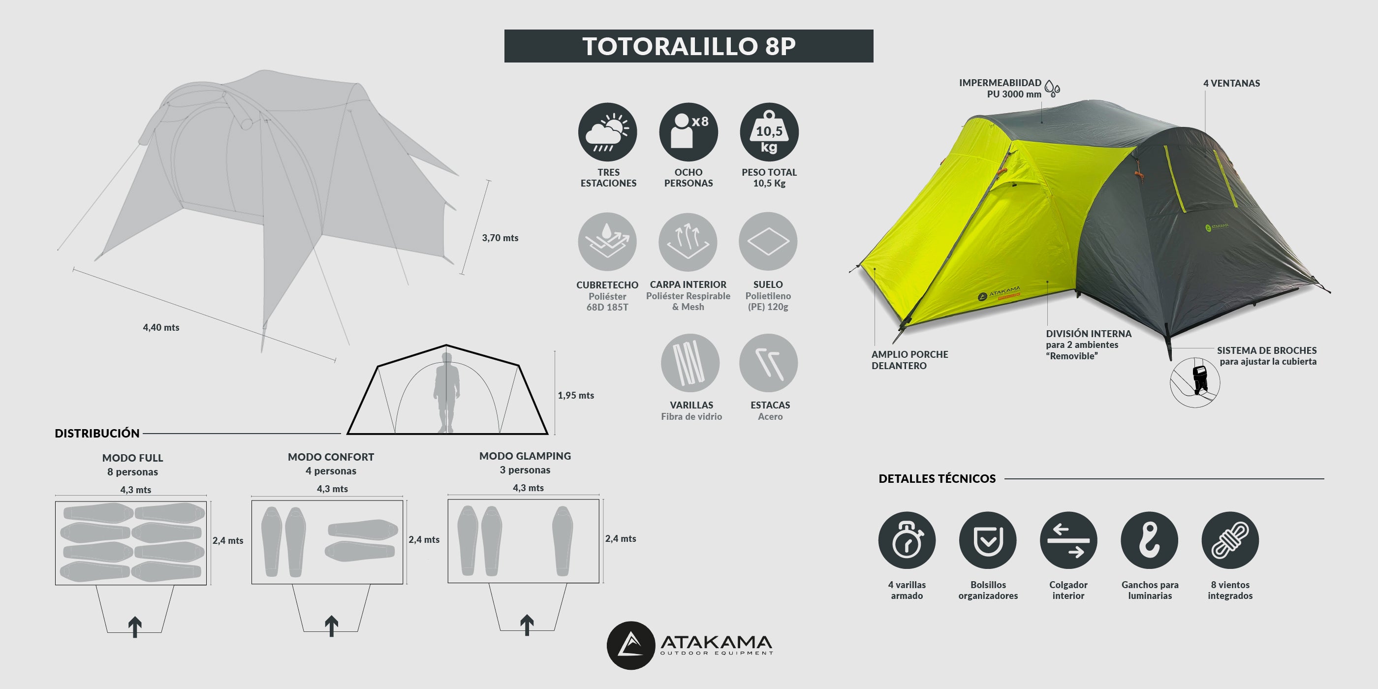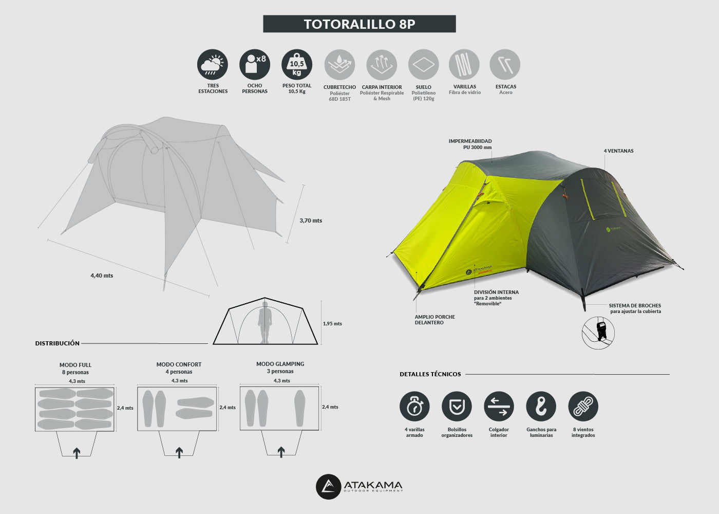 Si buscas comodidad y espacio para disfrutar de una experiencia de camping inolvidable con tu pareja, familia o amigos, esta carpa es la opción ideal. Diseñada para ofrecer amplitud, funcionalidad y resistencia, será tu refugio perfecto en cada aventura al aire libre.