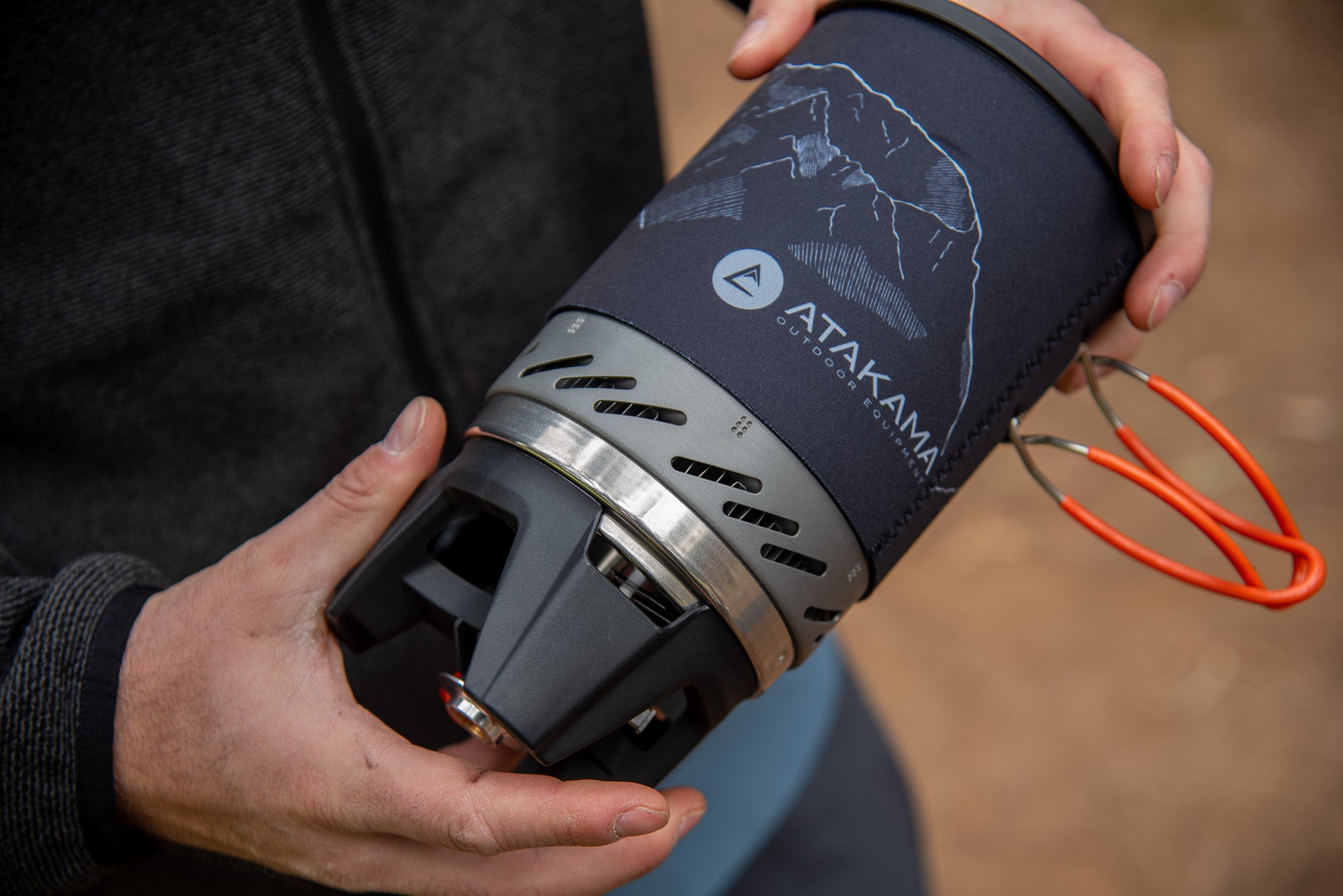 Cocinilla portátil Atakama Outdoor Cuernos del Paine 1L, compacta, ligera y potente. Ideal para cocinar en montaña, camping o viajes. Hierva 1 litro de agua en sólo 4 minutos.