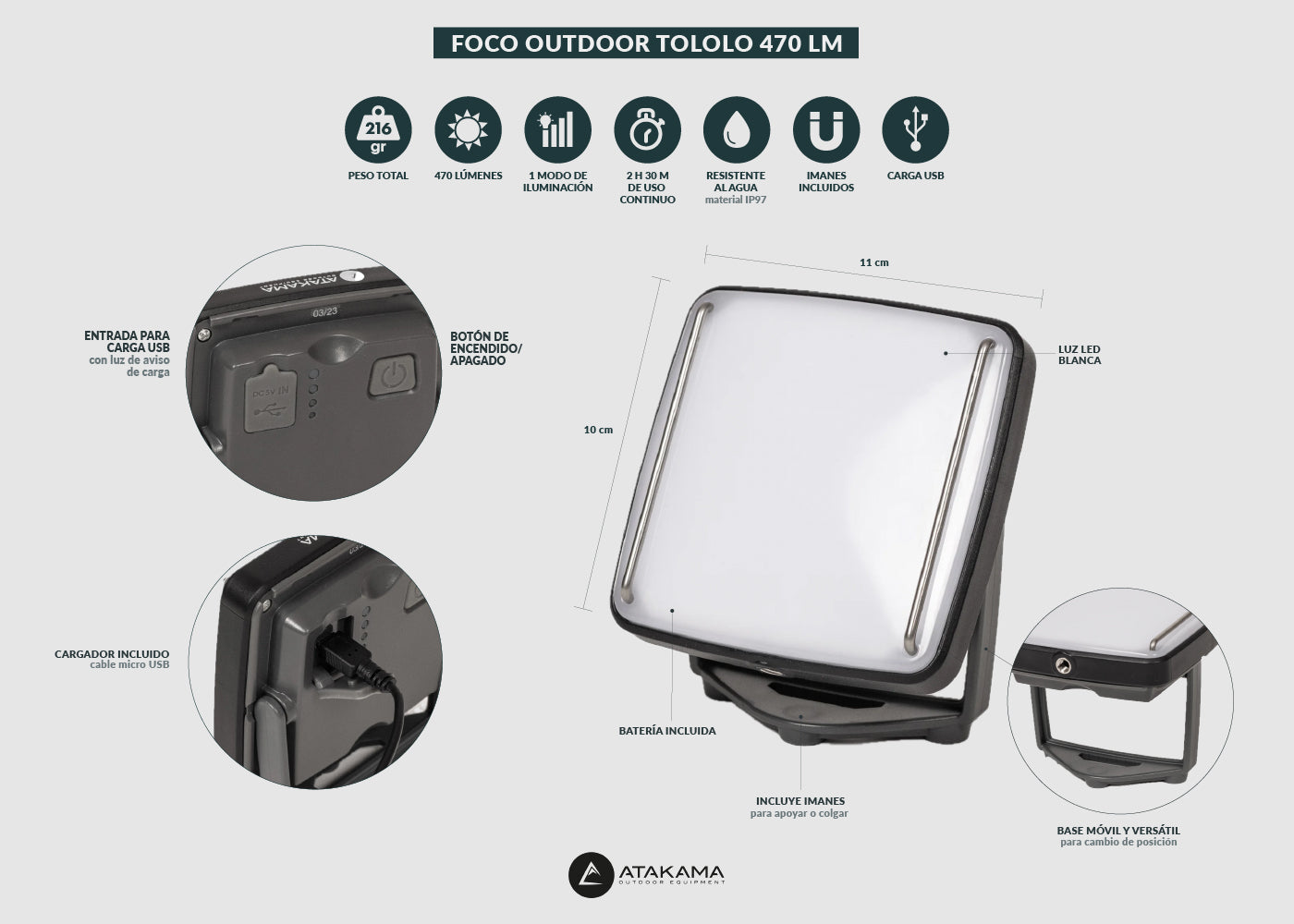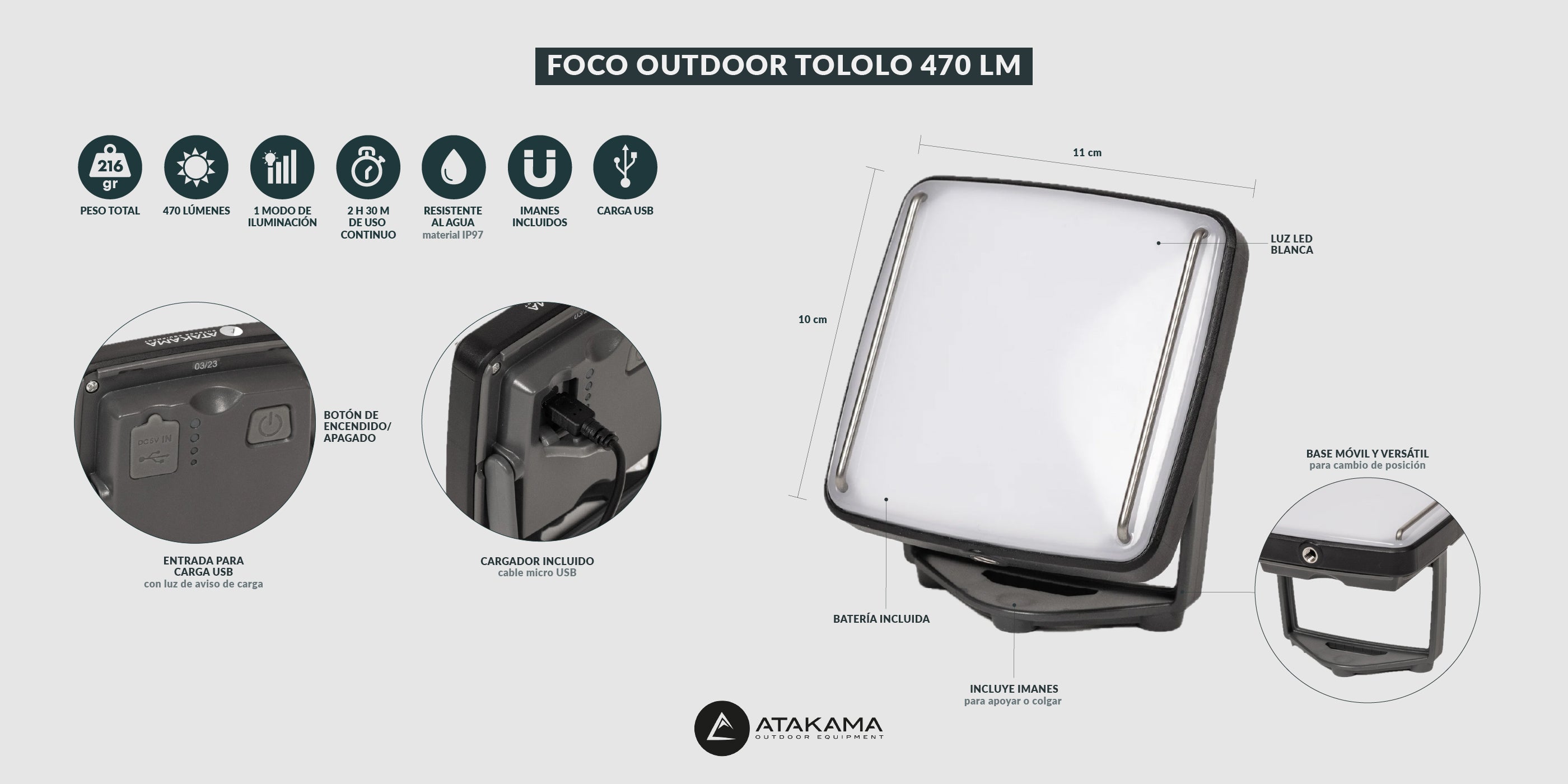 Soluciona la iluminación de tus salidas de camping y trekking, puede servir para iluminar tu parrilla o tu terraza. Incluye imanes para facilidad de colgado.