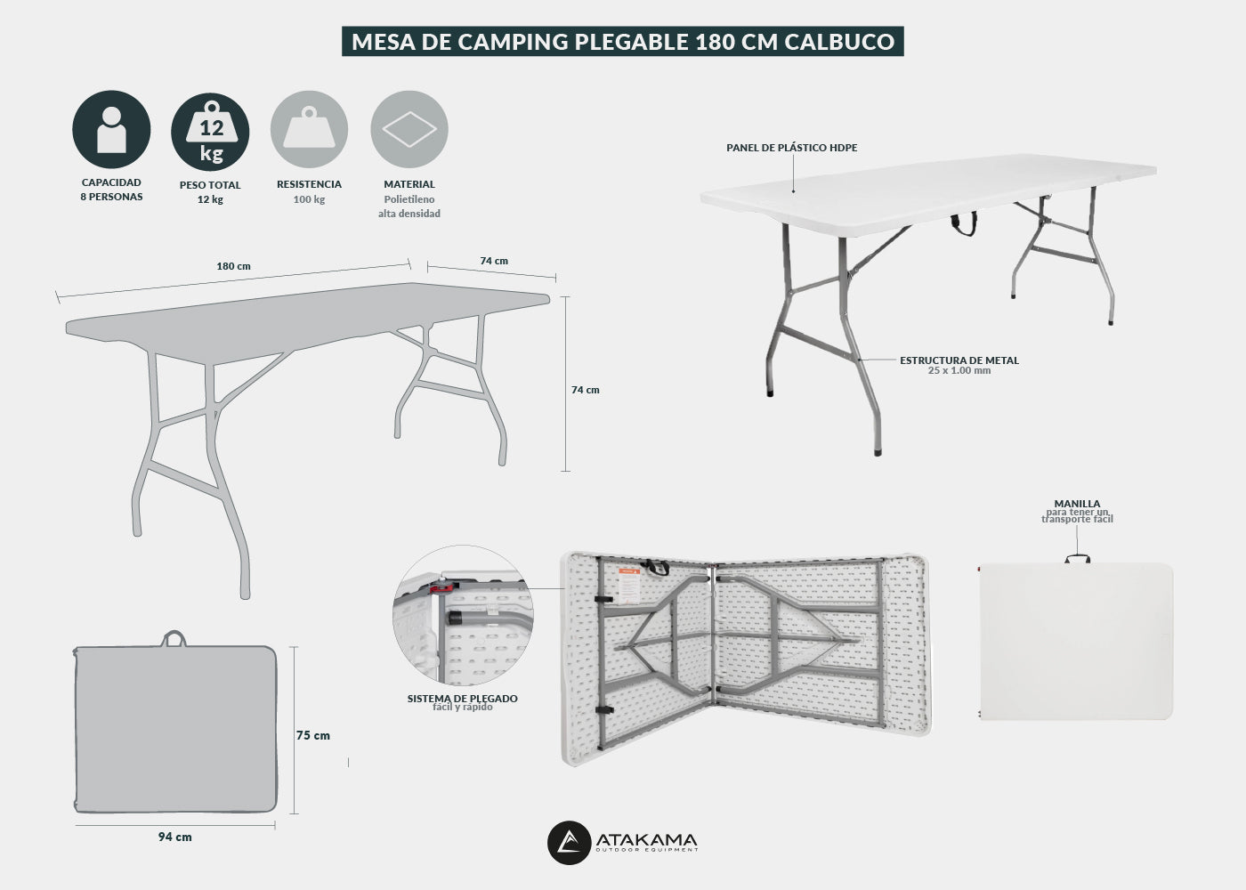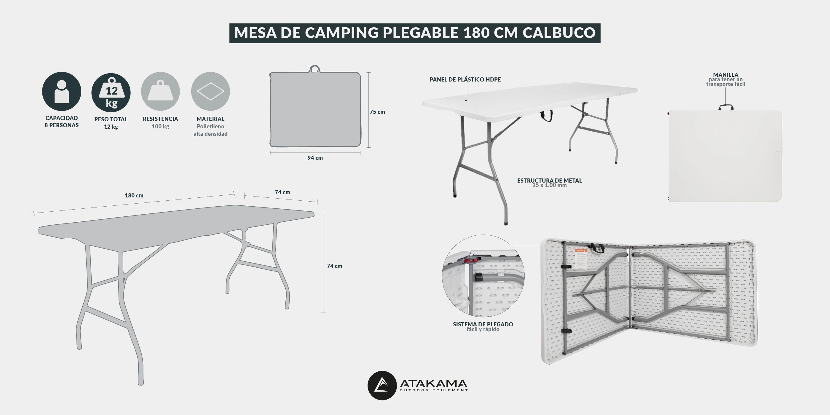 Mesa de camping plegable Calbuco 180 cm Blanca