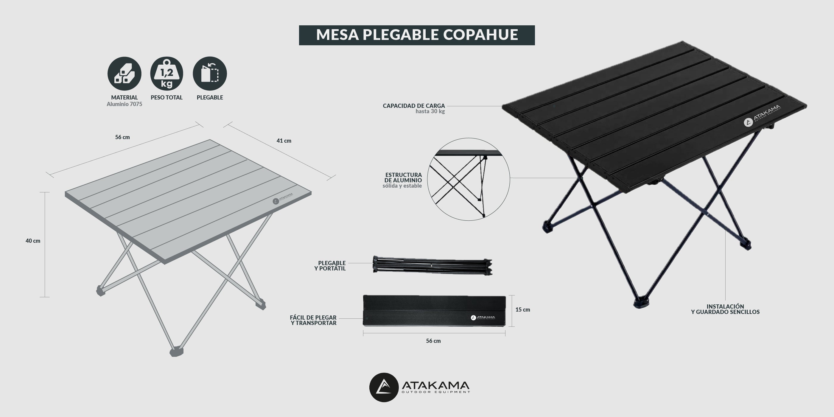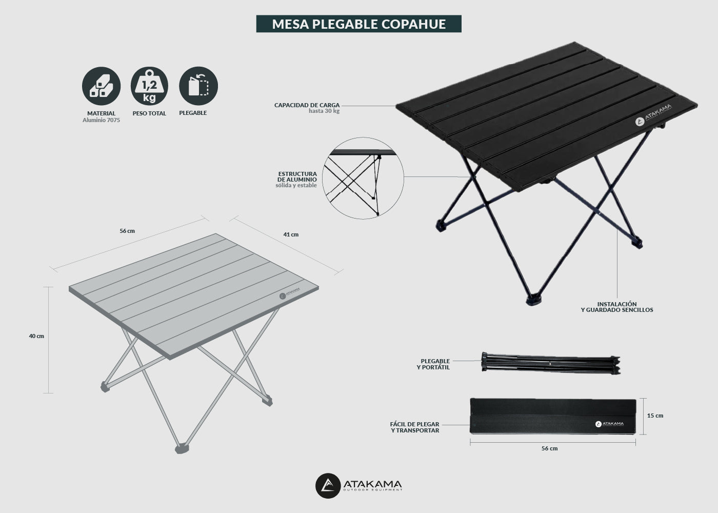 La Mesa Plegable Copahue combina ligereza y firmeza en un diseño pensado para explorar sin límites. Su estructura de aluminio 7075 ofrece estabilidad sin peso extra, ideal para llevarla a cualquier parte y desplegarla en segundos.