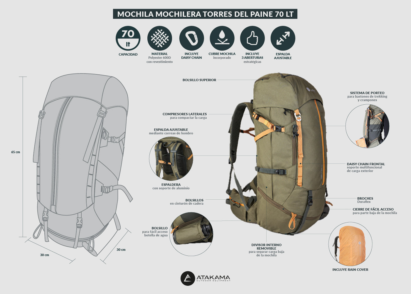 Mochilera unisex con espalda acolchada y con ajuste a diferentes tallas desde un S a una L, no solo su espalda se ajusta sino también sus correas de hombro. Cuenta con múltiples bolsillos y dos aperturas.