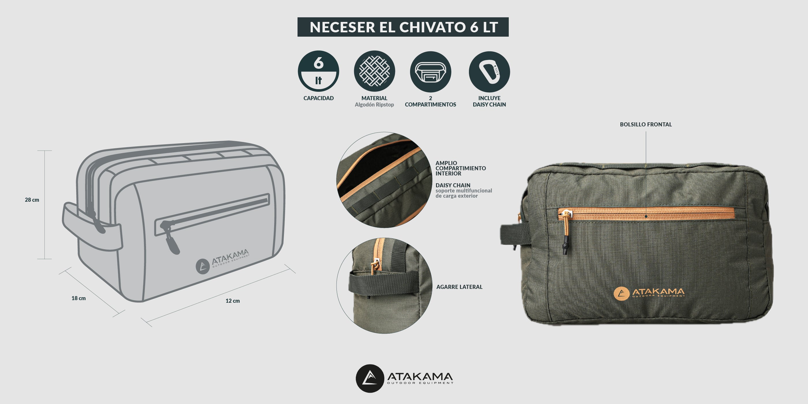 El Neceser El Chivato 6 lt es compacto, resistente y pensado para acompañarte en cada salida. Su diseño funcional te permite organizar tus esenciales sin complicaciones, listo para cualquier aventura.