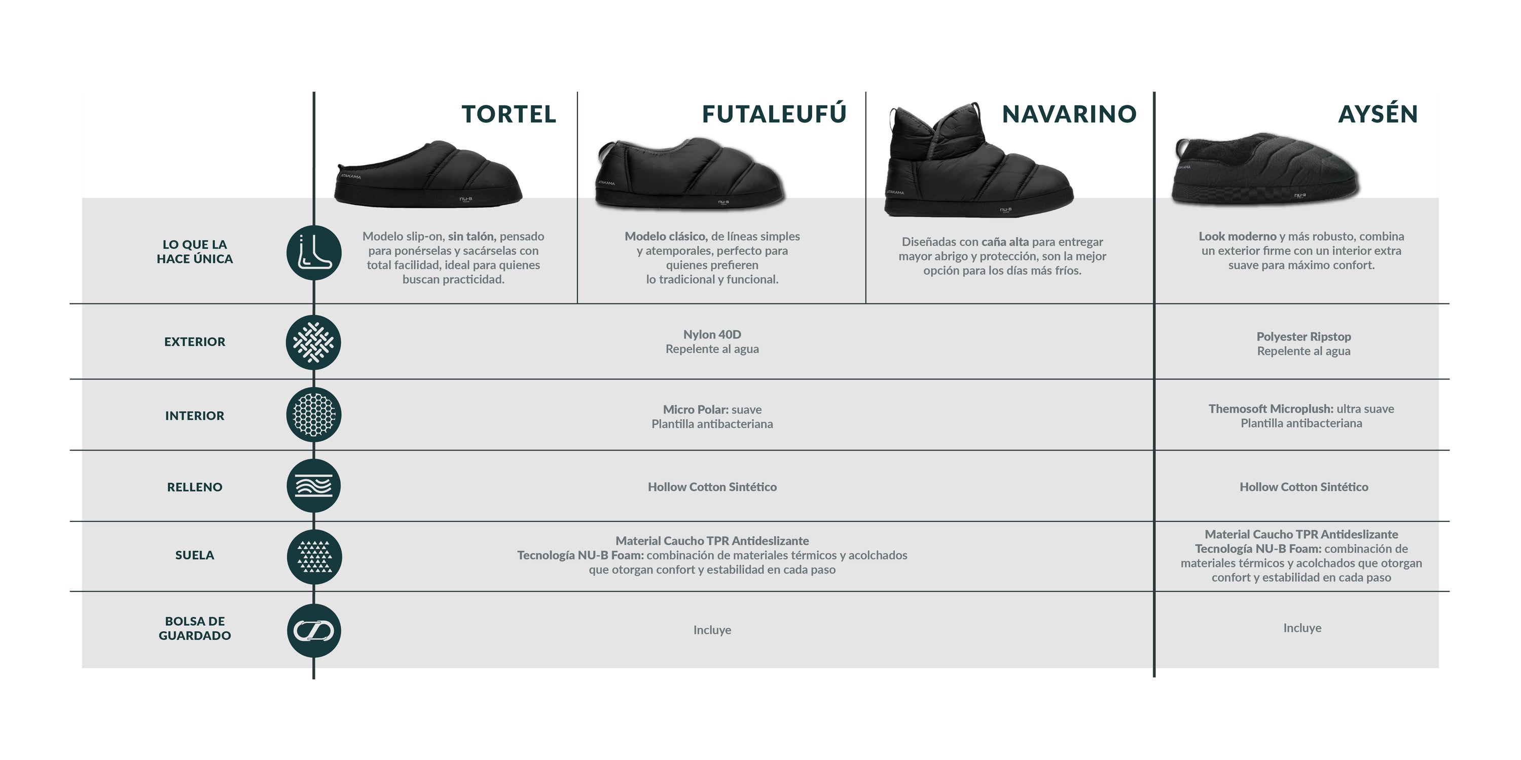 Cálidas, cómodas y con buen agarre. Las Futaleufú son perfectas para comenzar y terminar el día, ya sea en la montaña o en casa. Te abrigan y acompañan en todas tus situaciones.