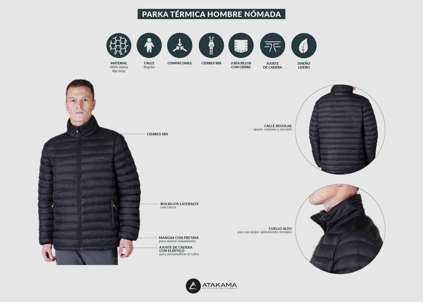 La Parka Nómada combina abrigo, ligereza y funcionalidad en una sola prenda. Diseñada para resistir el frío sin sacrificar comodidad, te mantiene cálido y protegido en cualquier entorno. Su diseño compacto permite guardarla fácilmente y llevarla siempre contigo, lista para acompañarte en cada travesía, desde la ciudad hasta la montaña.