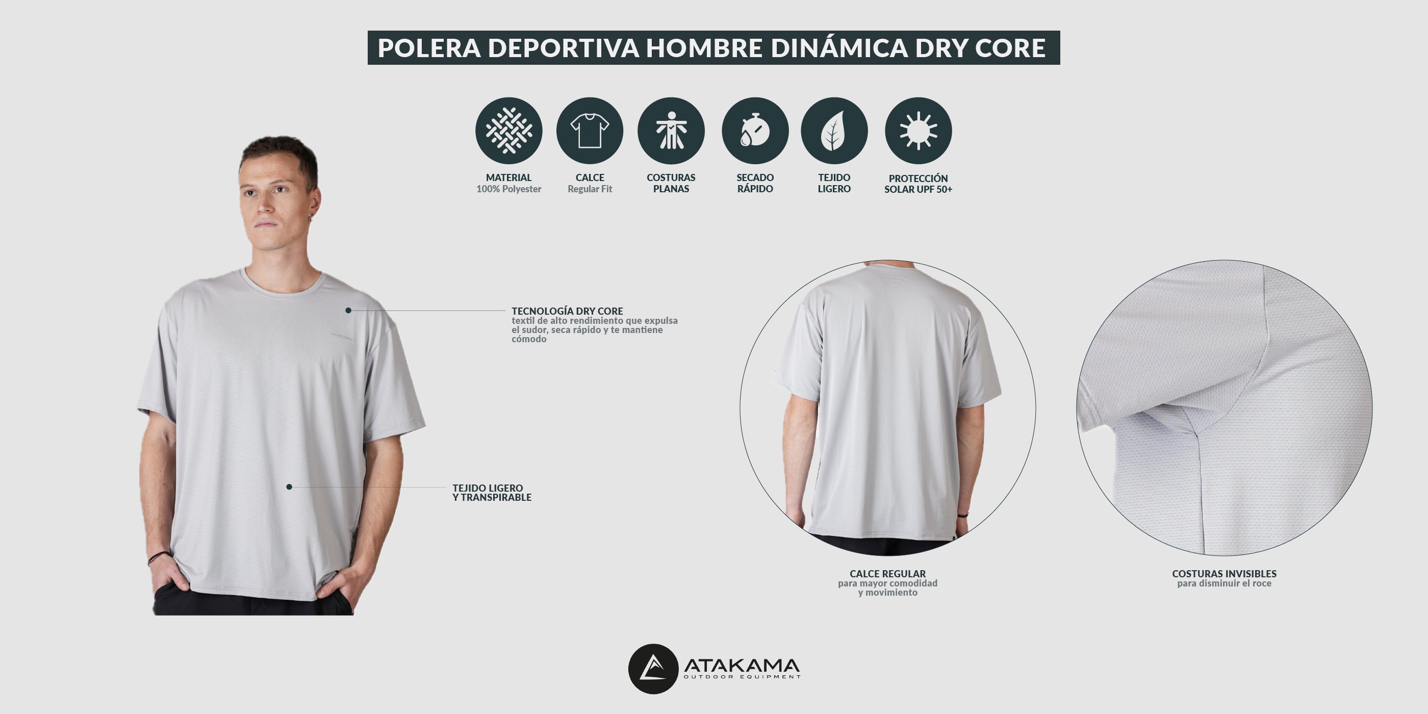 La Polera Deportiva Dinámica Dry Core está hecha para moverse contigo. Ligera, cómoda y respirable, te mantiene fresco y preparado para cualquier desafío, dentro o fuera del sendero.