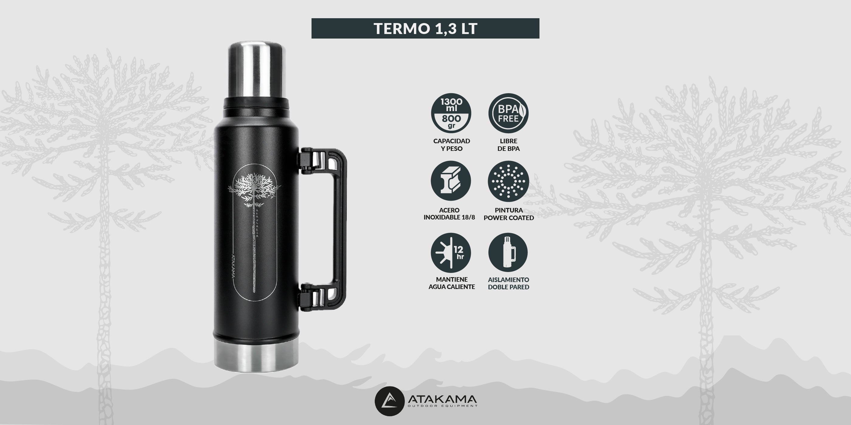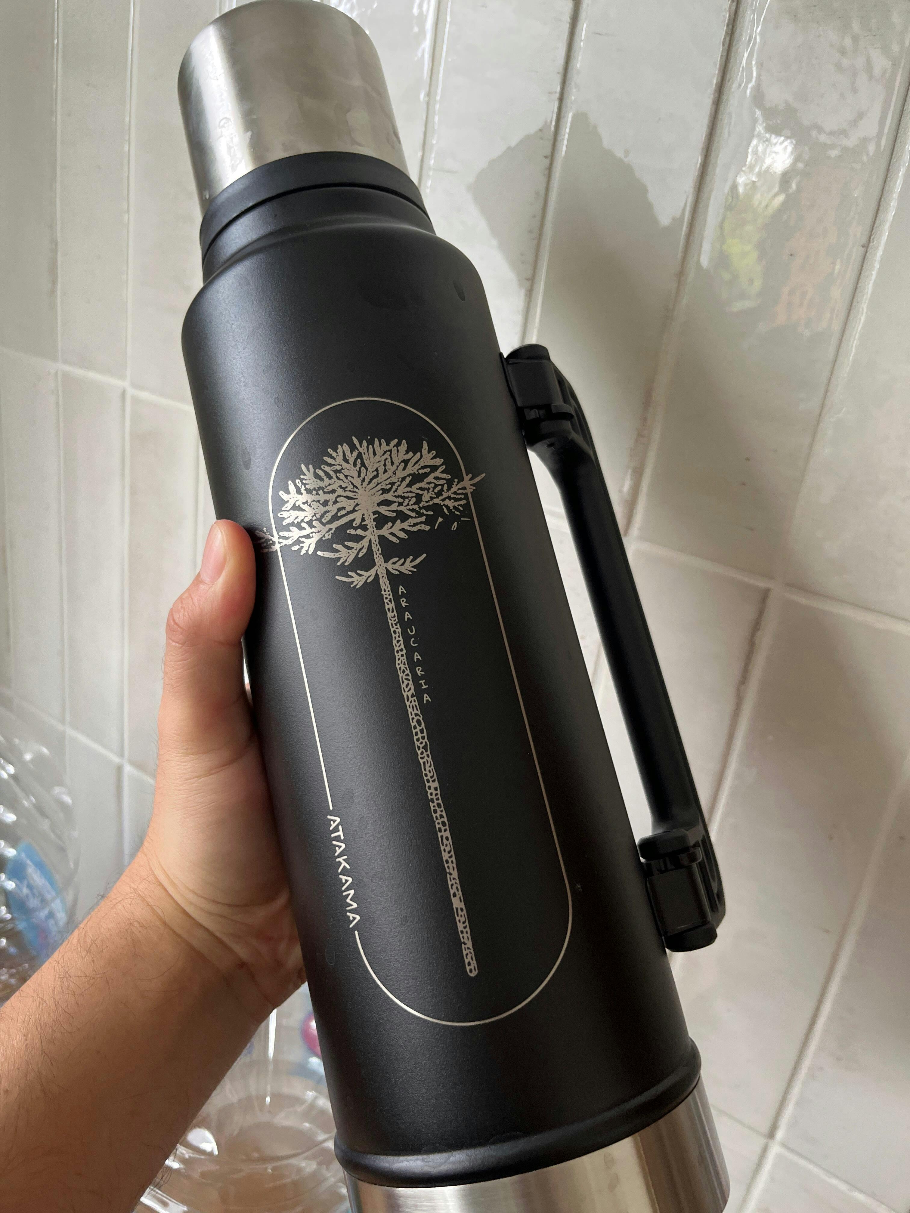 Termo con tapón cebador y tapa multifuncional ideal para acompañarte en trayectos más largos gracias a su mayor capacidad de litraje.