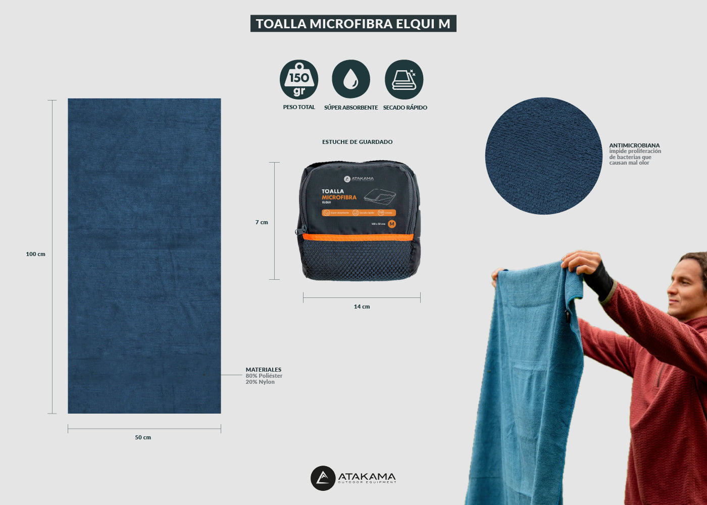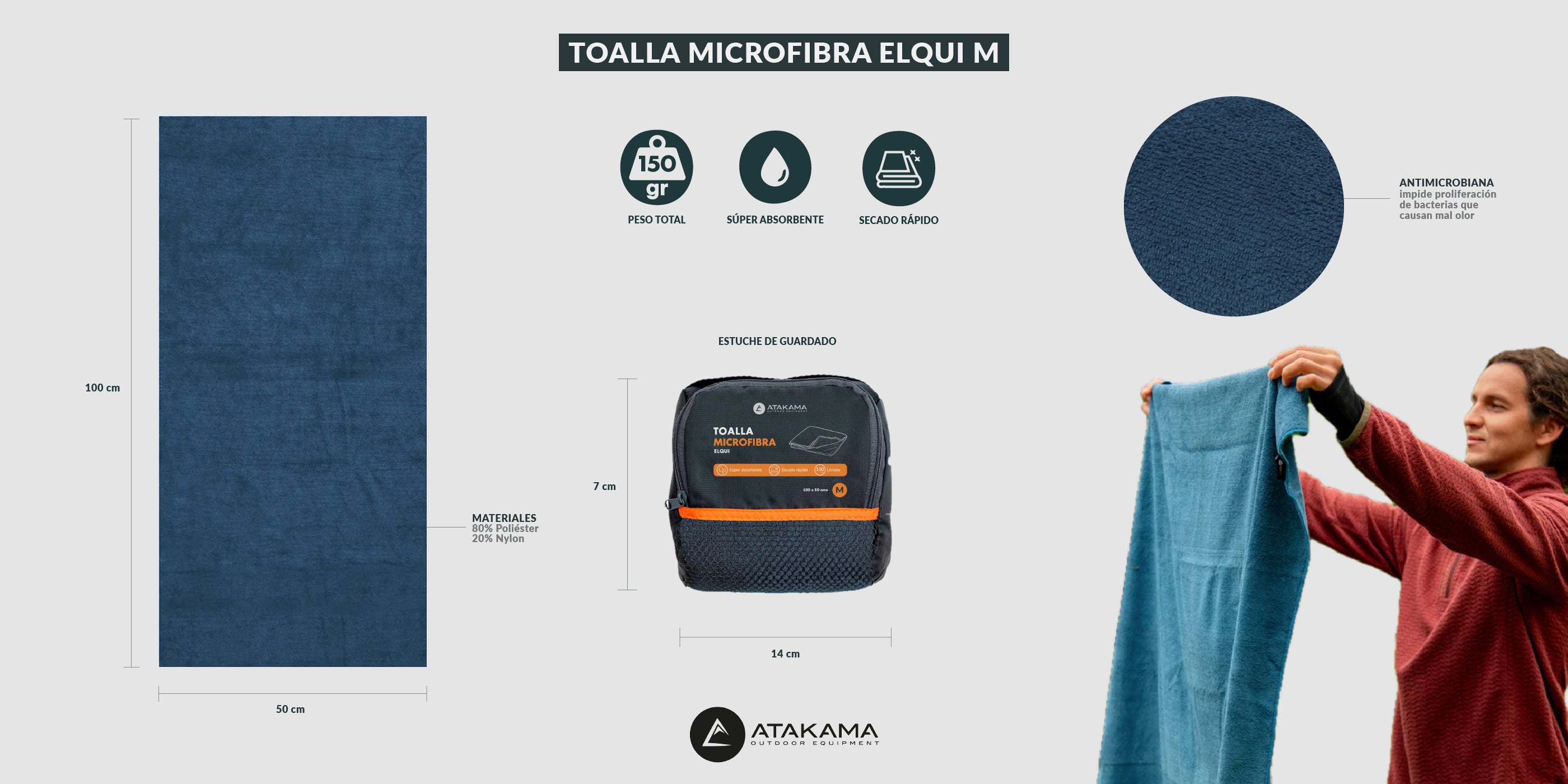 Ligera, de secado rápido, antimicrobiana para evitar malos olores e incluye bolsa de guardado.
