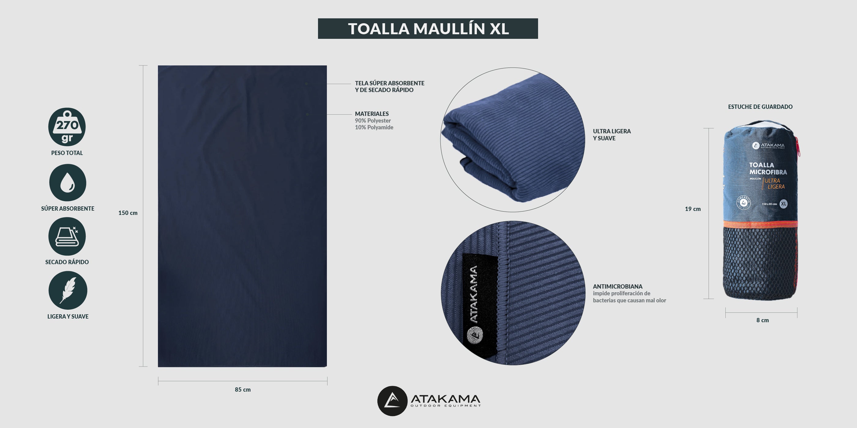 Toalla Microfibra Maullín, ultraligera, súper absorbente, de secado rápido, suave, antimicrobiana y duradera para máxima comodidad.