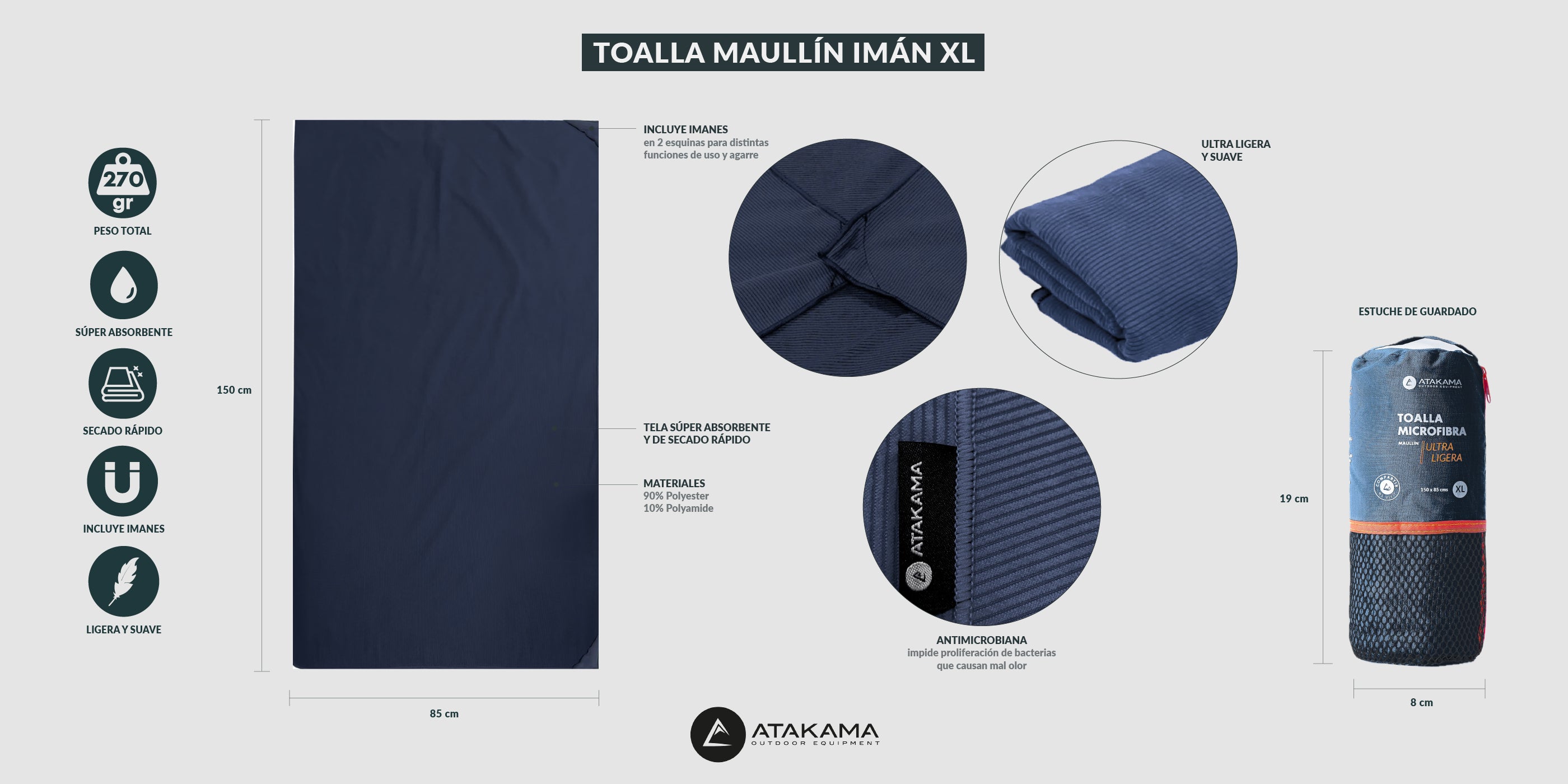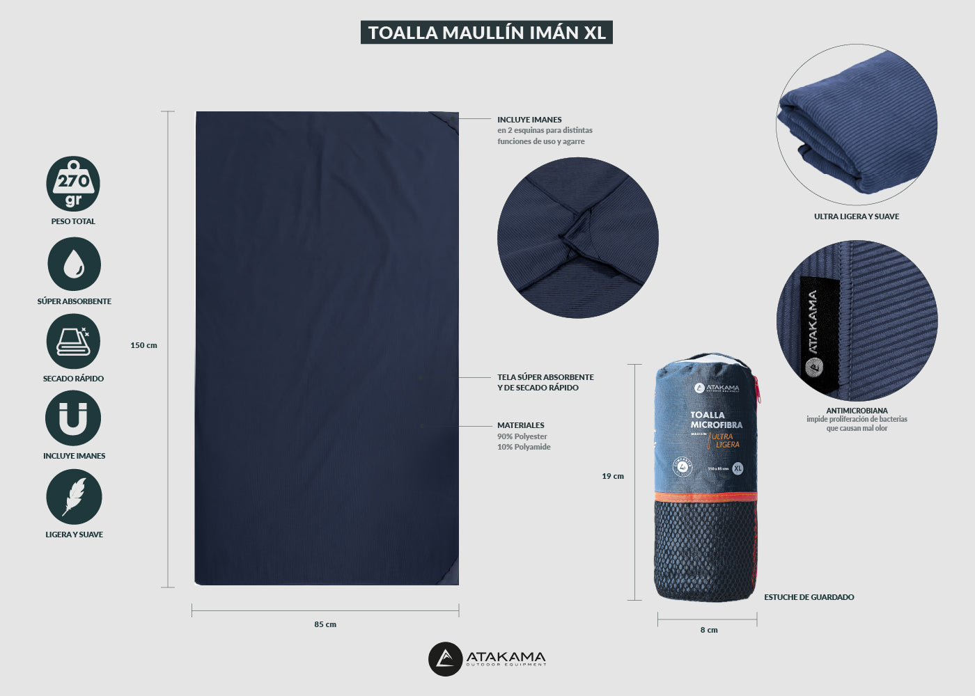 Toalla Microfibra Maullín XL con Imán Azul Marino